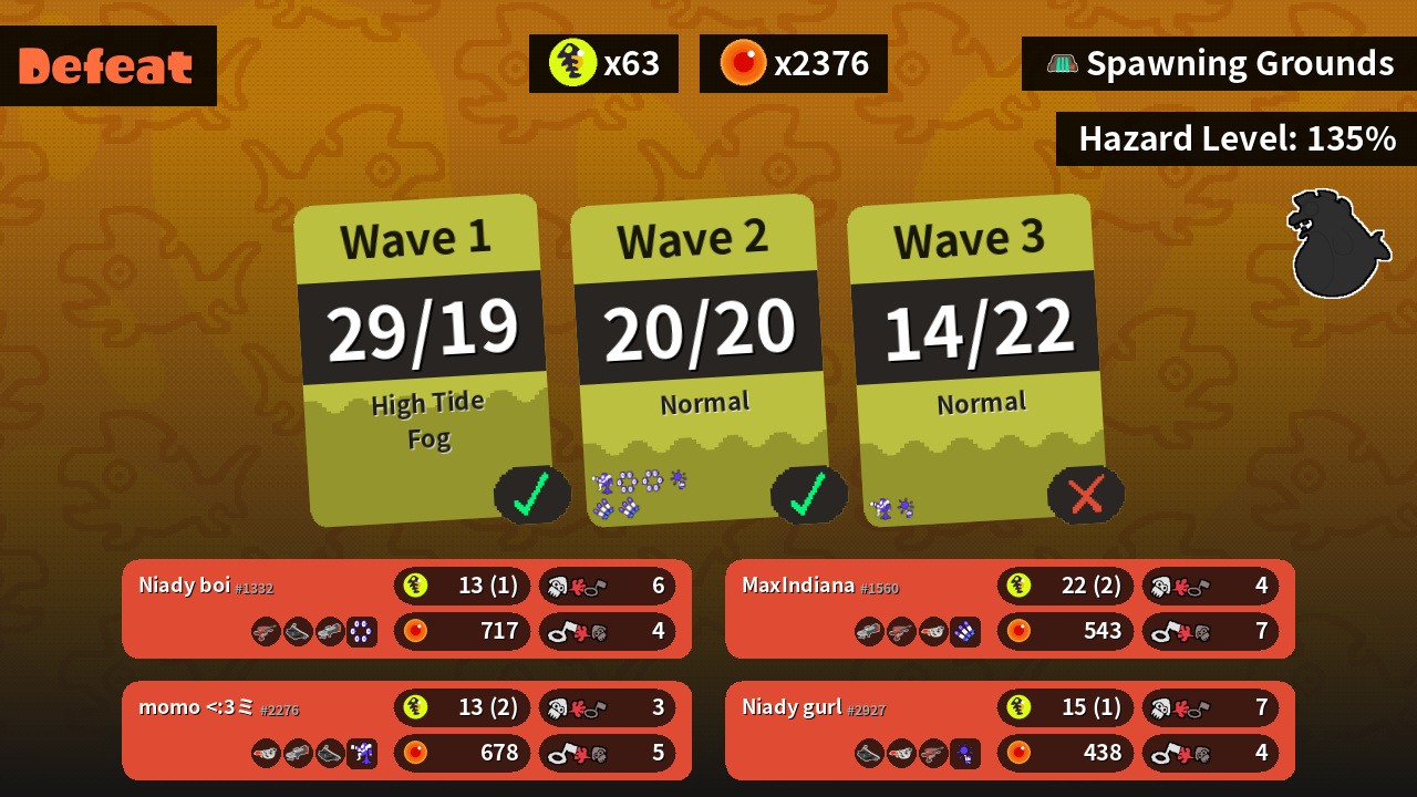 | Weapons | Dualie Squelchers Bloblobber S-BLAST '92 | S-BLAST '92 Dualie Squelchers Goo Tuber | Bloblobber Goo Tuber Dualie Squelchers | Goo Tuber S-BLAST '92 Bloblobber |