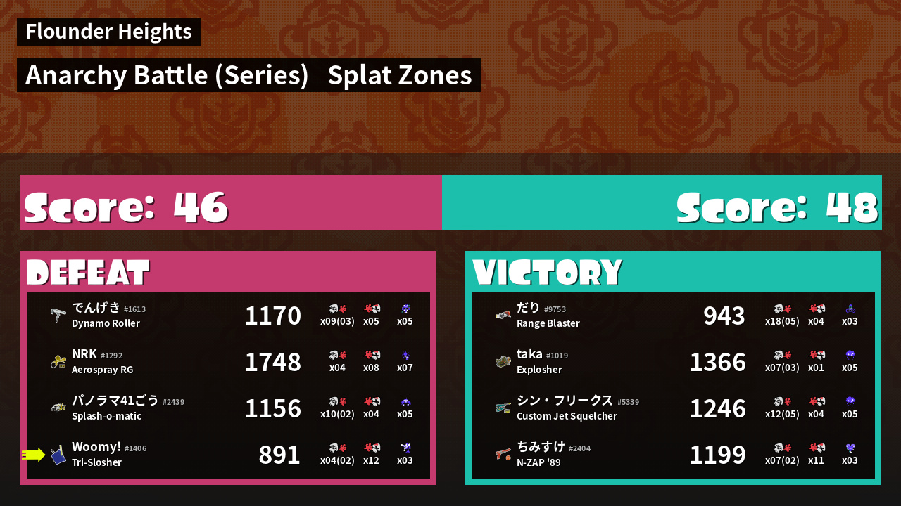 | Mode | Splat Zones - Anarchy Battle (Series) | ||