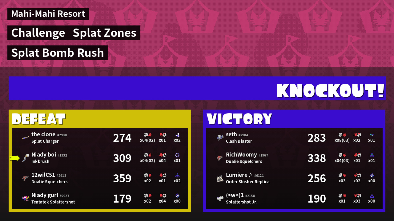 | Challenge | Splat Bomb Rush Let the Splat Bombs fly in this free-for-all! | ||