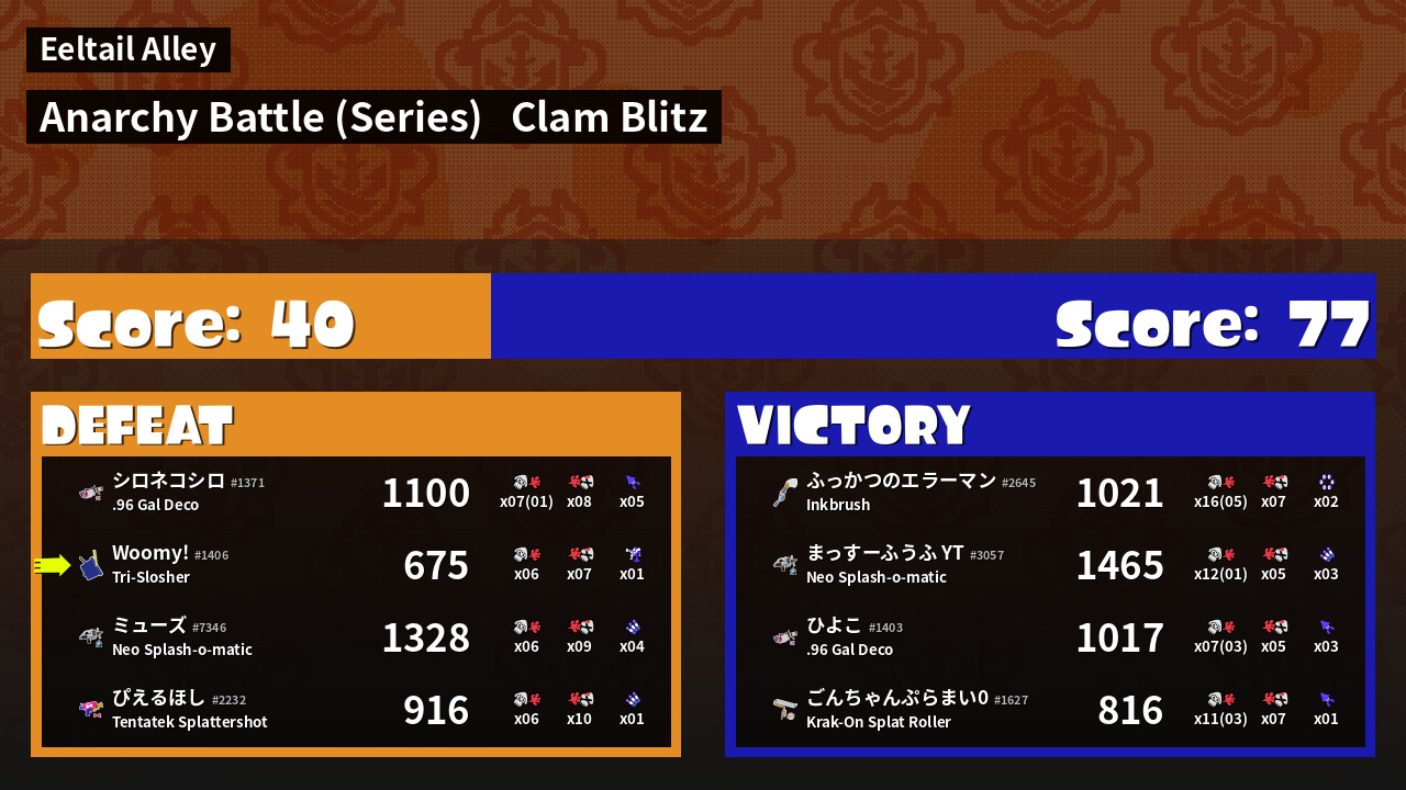 | Mode | Clam Blitz - Anarchy Battle (Series) | ||