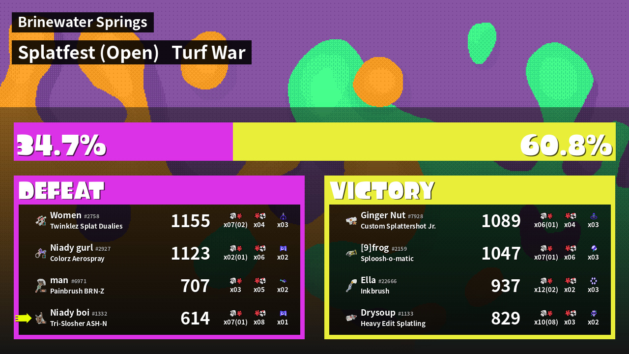 | Mode | Turf War - Splatfest (Open) | ||