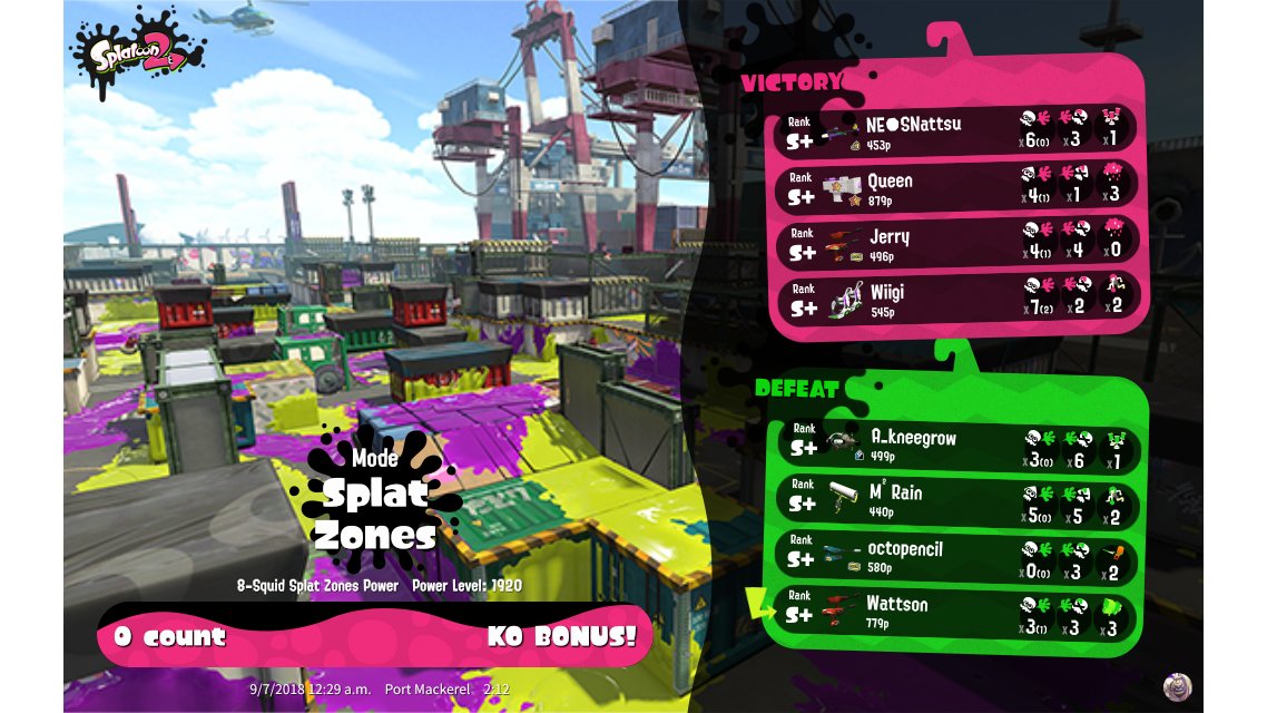 | Mode | Splat Zones - Ranked Battle | ||||||||||||||||||||||||||||||||||||||||