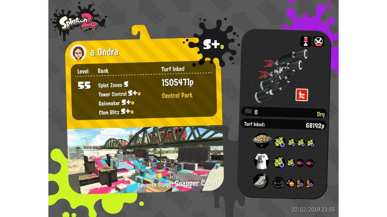 |  Splattershot | 69 | S+ | 254 | 0 (0) / 0 | 0 / 3 | 0.00 0.00% | ||