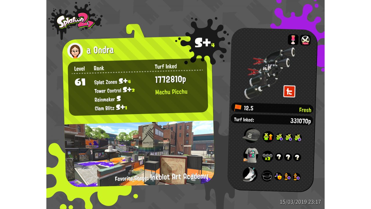 | Name | Weapon | Level | Rank | Inked | k+a/sp | k/d |