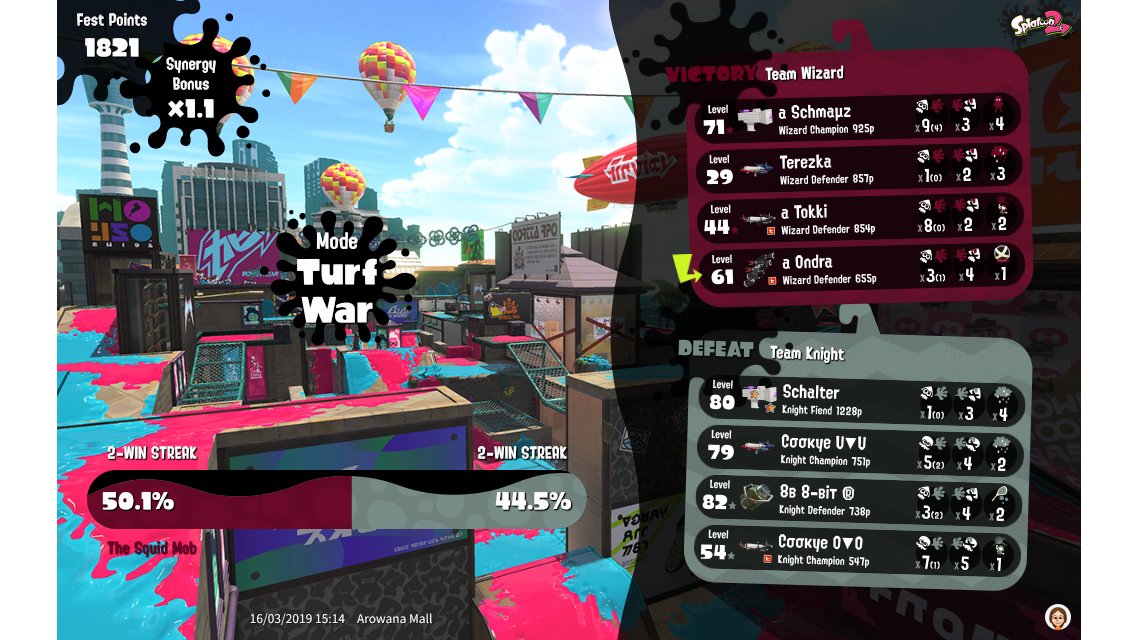 | Splatfest Title | Wizard Defender 181 → Wizard Defender 280 | ||||||||||||||||||||||||||||||||||