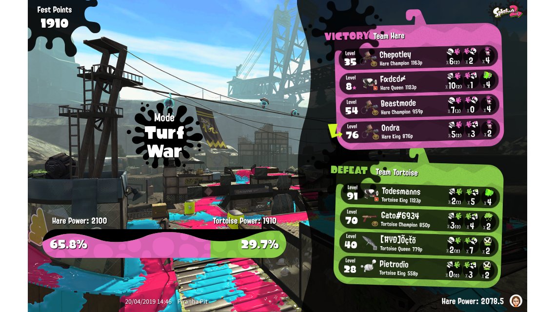 | Mode | Turf War - Splatfest (Pro) | ||||||||||||||||||||||||||||||||||