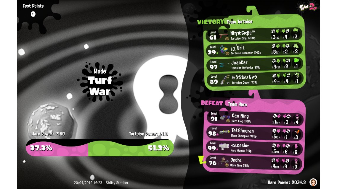 | Splatfest Title | Hare King → Hare King | |||||||||||||||||||||||||||||||||||||||||||