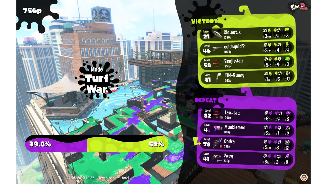 | Mode | Turf War - Regular Battle | |||||||||||||||||||||||||||||||||||||