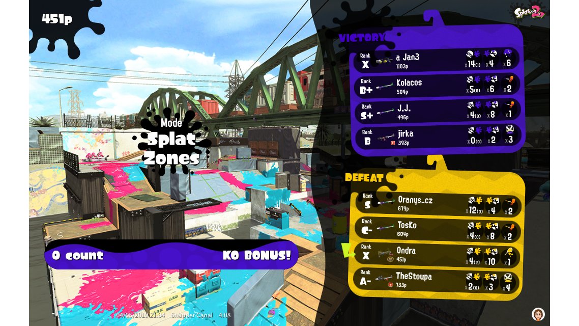 | Mode | Splat Zones - Private Battle | ||||||||||||||||||||||