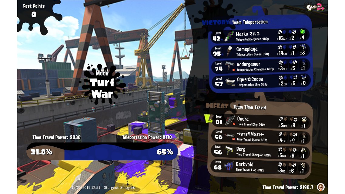 | Splatfest Title | Time Travel King → Time Travel King | |||||||||||||||||||||||||||||||||||||||||||