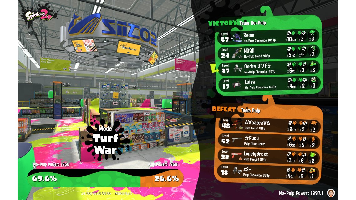 | Splatfest Title | No-Pulp Champion → No-Pulp King | |||||||||||||||||||||||||||||||