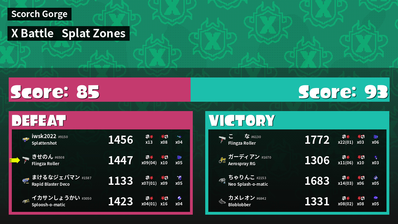 | Mode | Splat Zones - X Battle | ||