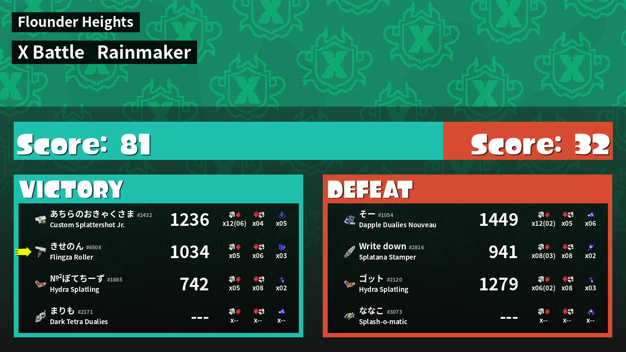 | Medals | #1 Rainmaker Carrier #1 Tenta Missiles User #2 Overall Splatter | ||