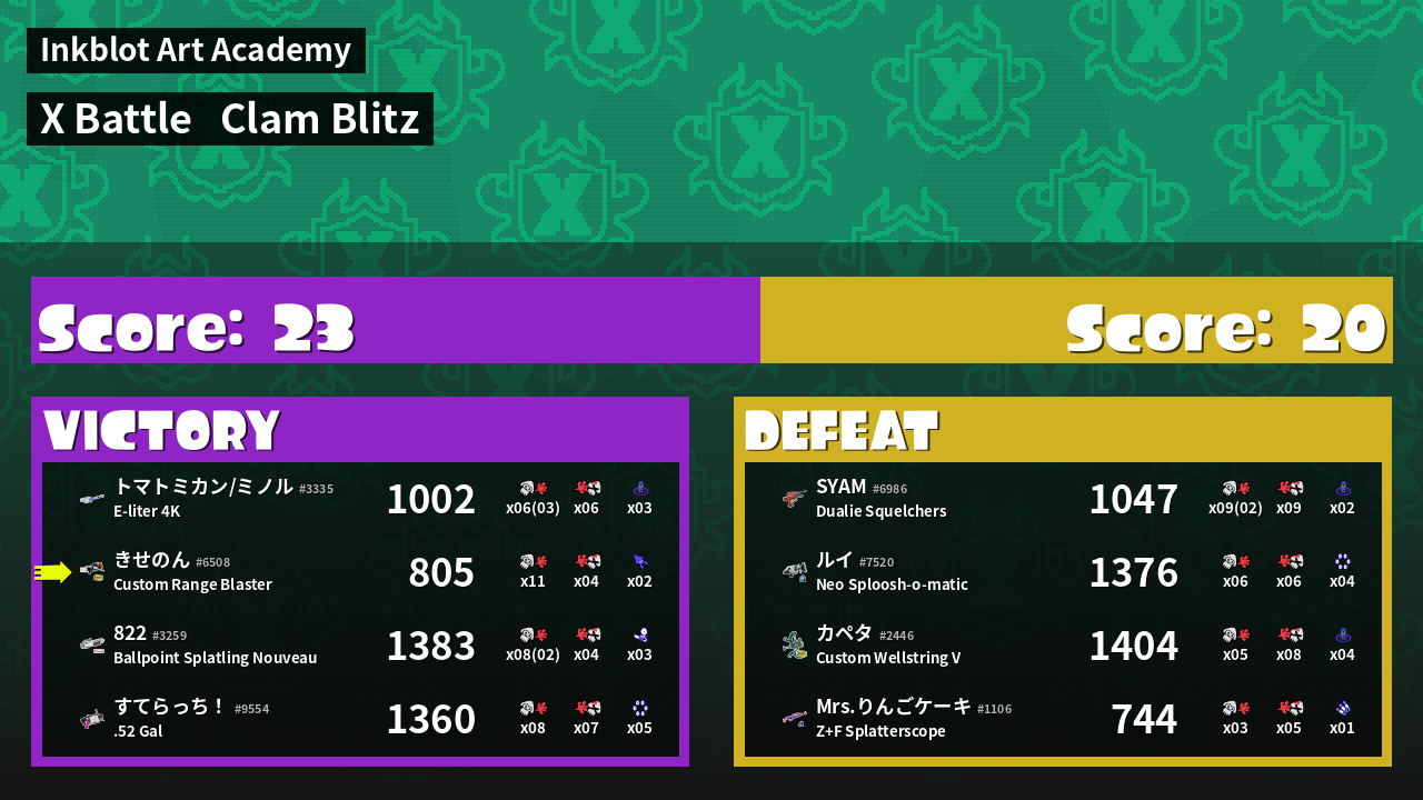 | Mode | Clam Blitz - X Battle | ||