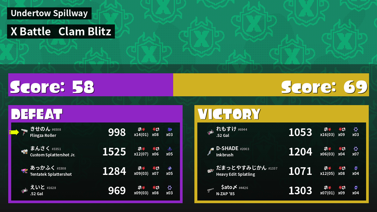 | Mode | Clam Blitz - X Battle | ||