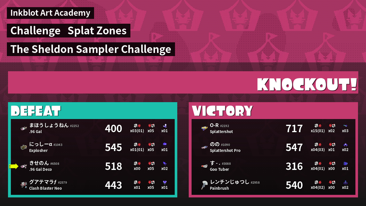 | Medals | #1 Splat Zone Inker #1 Splat Zone Hero #1 Damage Taker | ||