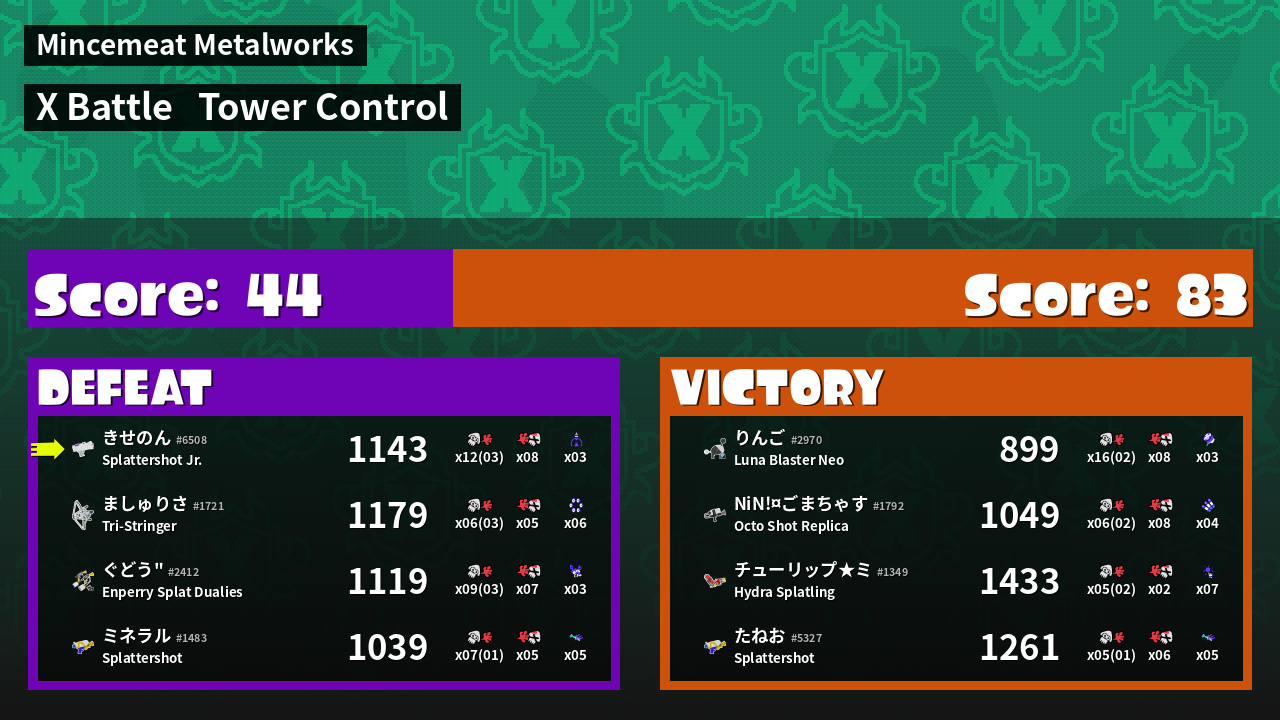 | Mode | Tower Control - X Battle | ||
