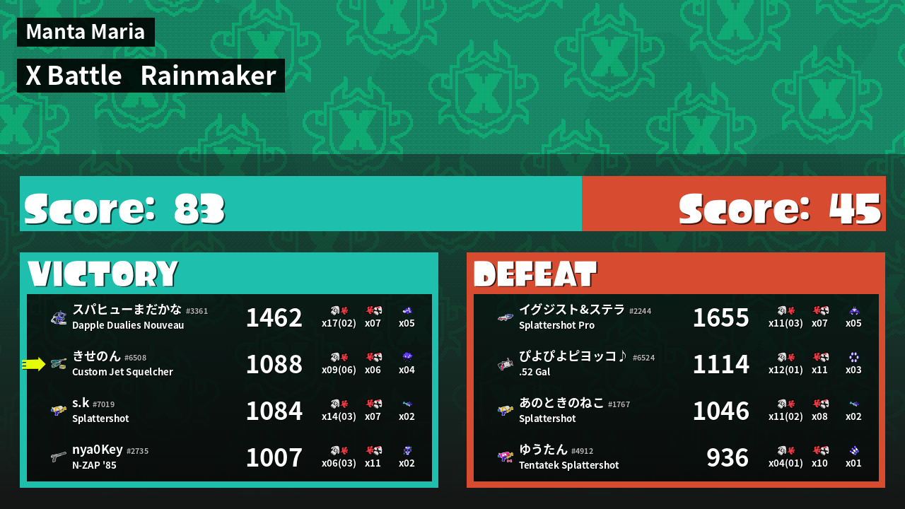 | Medals | Record-Score Setter #1 Super Jump Spot #1 Splat Assister | ||