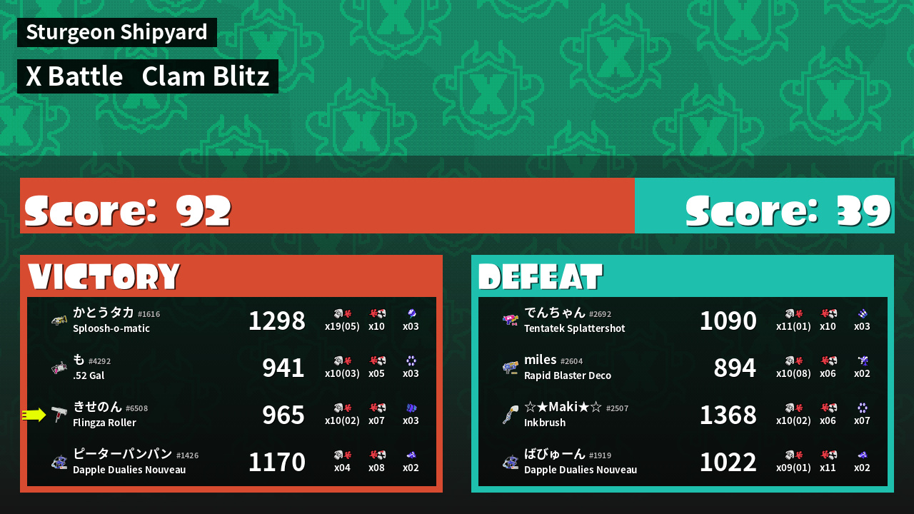| Medals | #1 Clam Stopper #1 Tenta Missiles User #2 Overall Splatter | ||