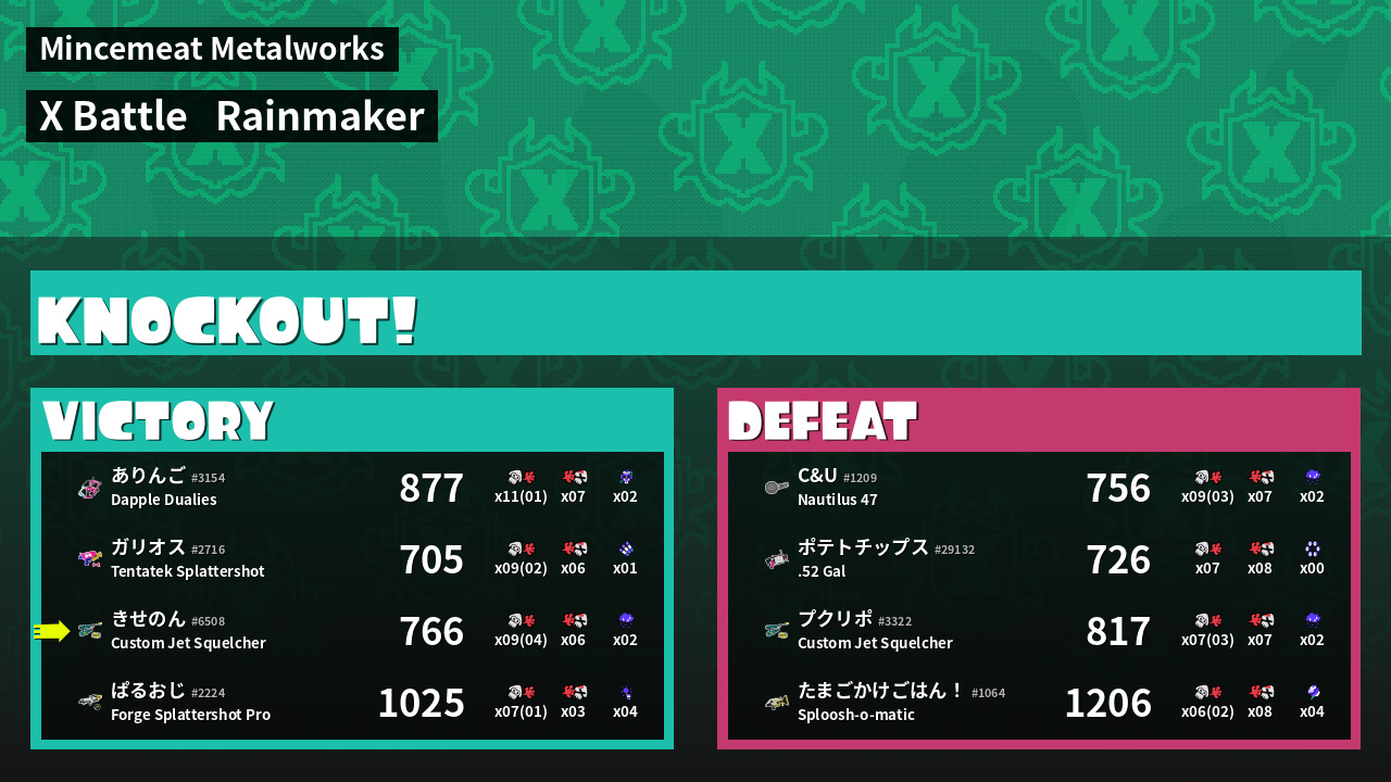 | Medals | #1 Splat Assister #1 Ink Consumer #1 Ink Storm User | ||