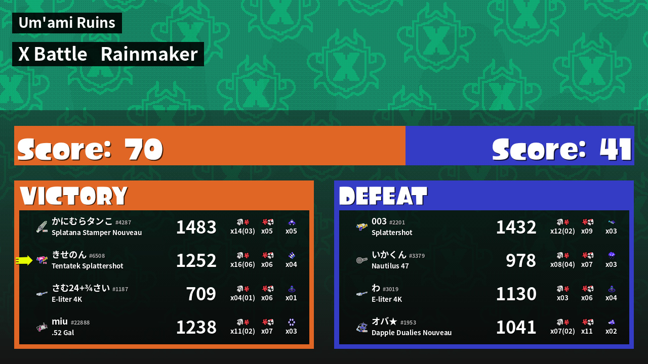| Medals | #1 Overall Splatter #1 Splat Assister #1 Rainmaker Stopper | ||