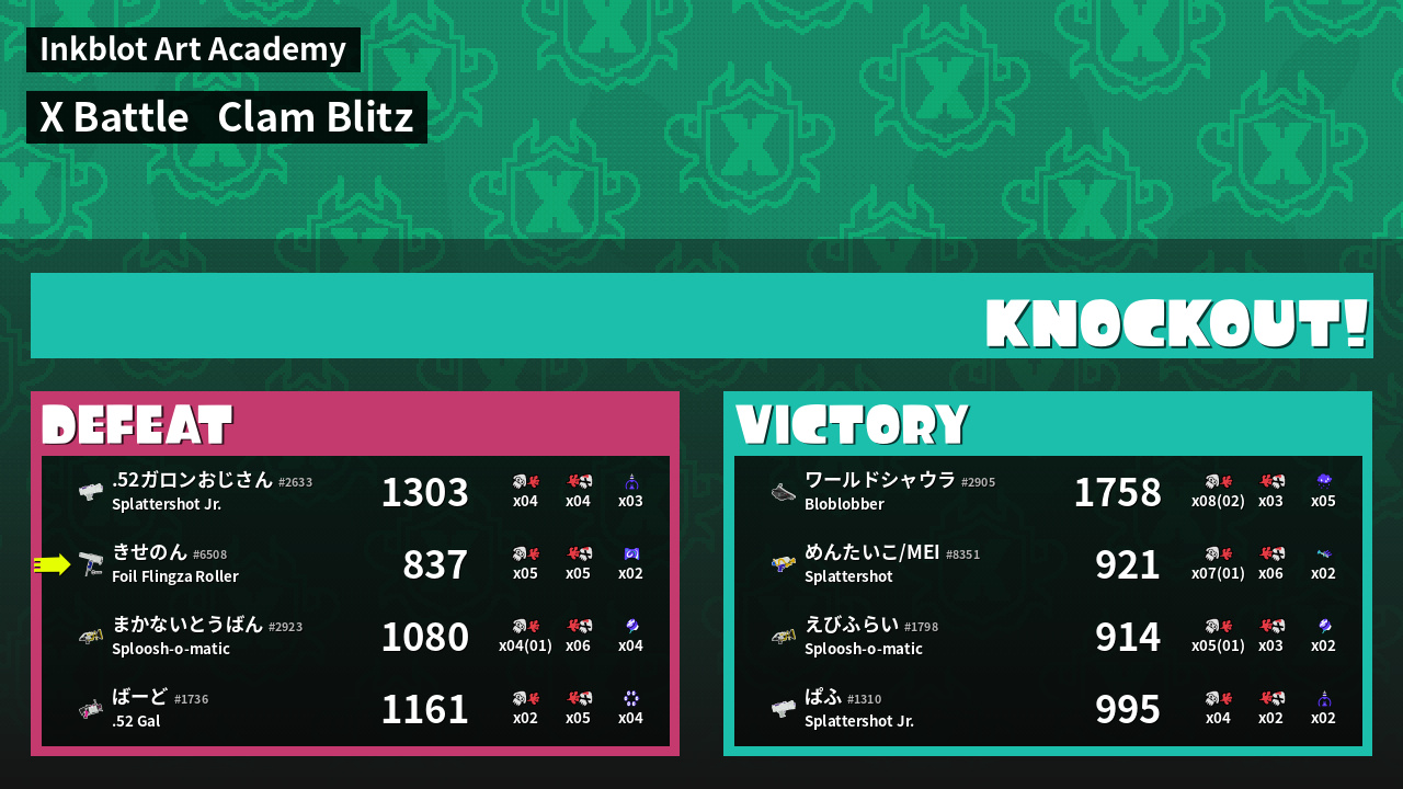 | Mode | Clam Blitz - X Battle | ||