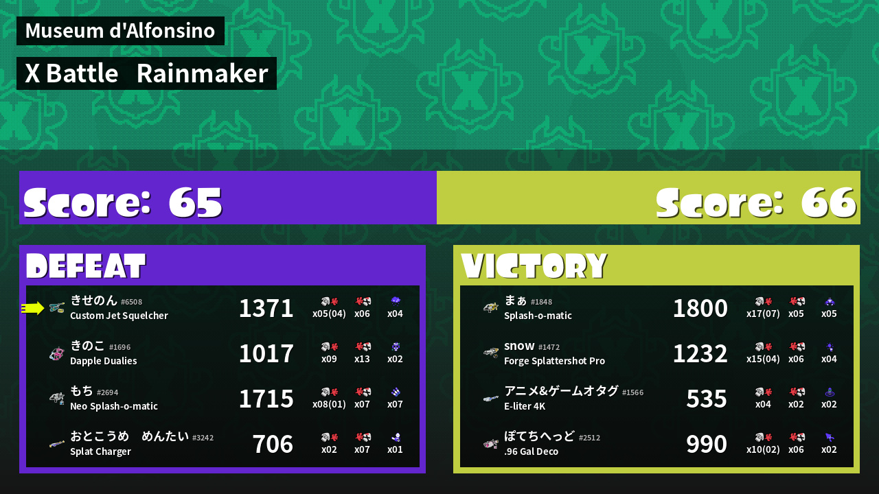 | Mode | Rainmaker - X Battle | ||