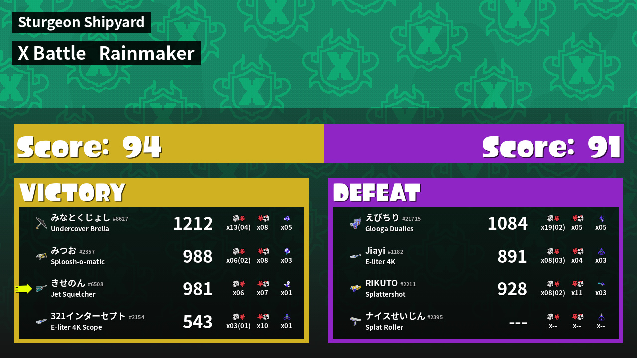 | Mode | Rainmaker - X Battle | ||