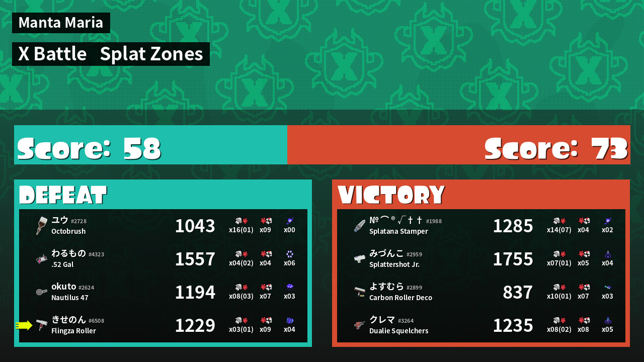 | Medals | #1 Splat Zone Guard #1 Ground Traveler #1 Tenta Missiles User | ||