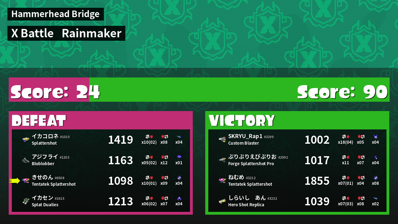| Weapon | Tentatek Splattershot ( Splat Bomb / Triple Inkstrike) | ||