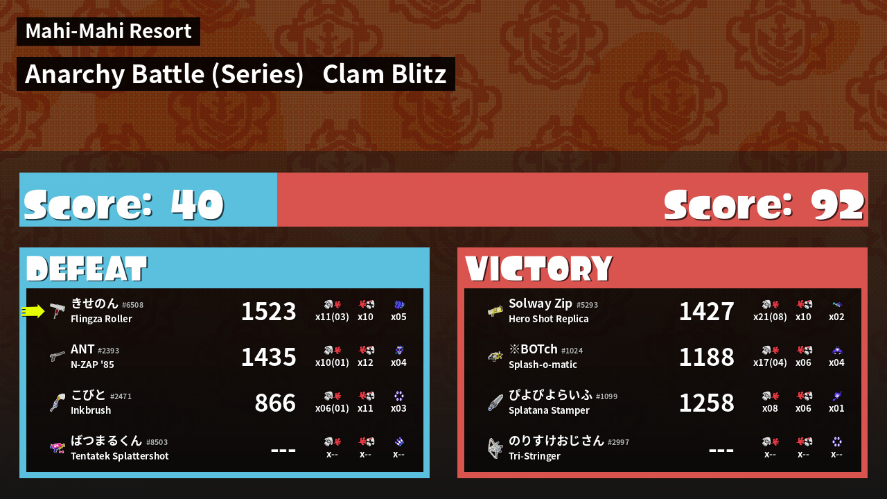 | Mode | Clam Blitz - Anarchy Battle (Series) | ||