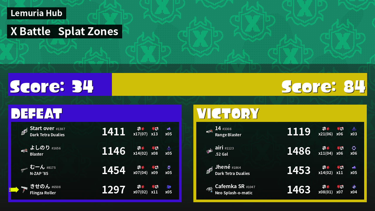 | Mode | Splat Zones - X Battle | ||