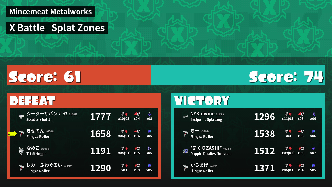 | Weapon | Flingza Roller ( Ink Mine / Tenta Missiles) | ||