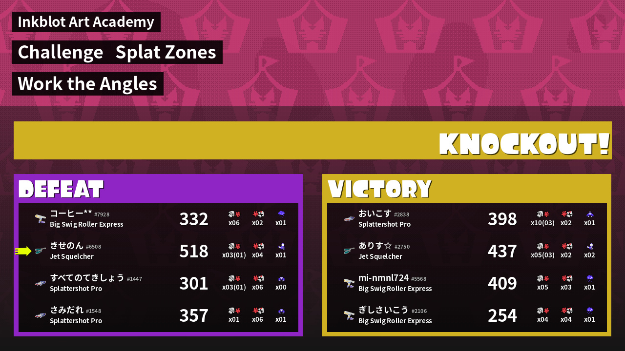 | Medals | #1 Splat Zone Inker #1 Turf Inker #1 Splat Assister | ||