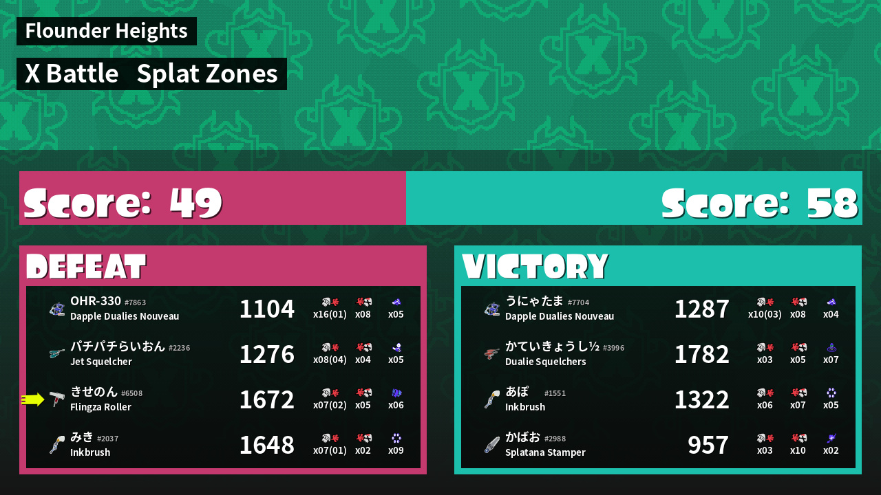 | Mode | Splat Zones - X Battle | ||