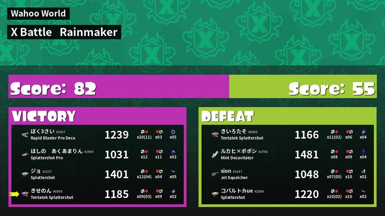 | Weapon | Tentatek Splattershot ( Splat Bomb / Triple Inkstrike) | ||