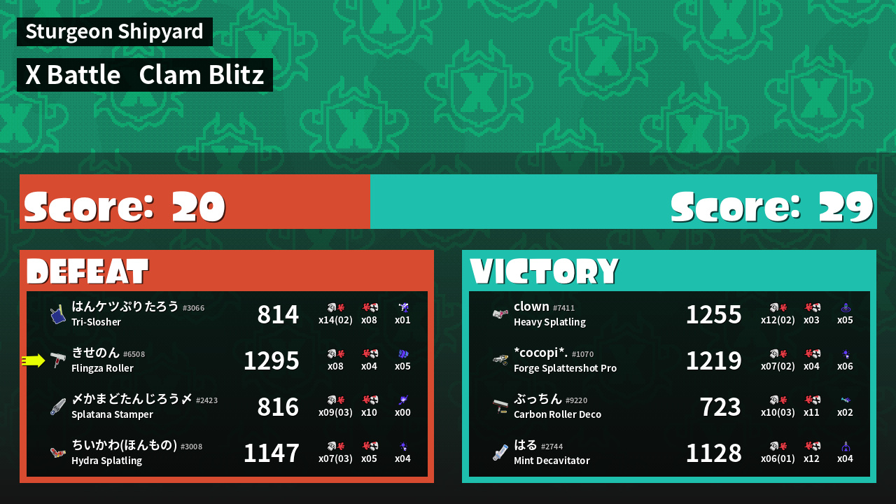 | Weapon | Flingza Roller ( Ink Mine / Tenta Missiles) | ||
