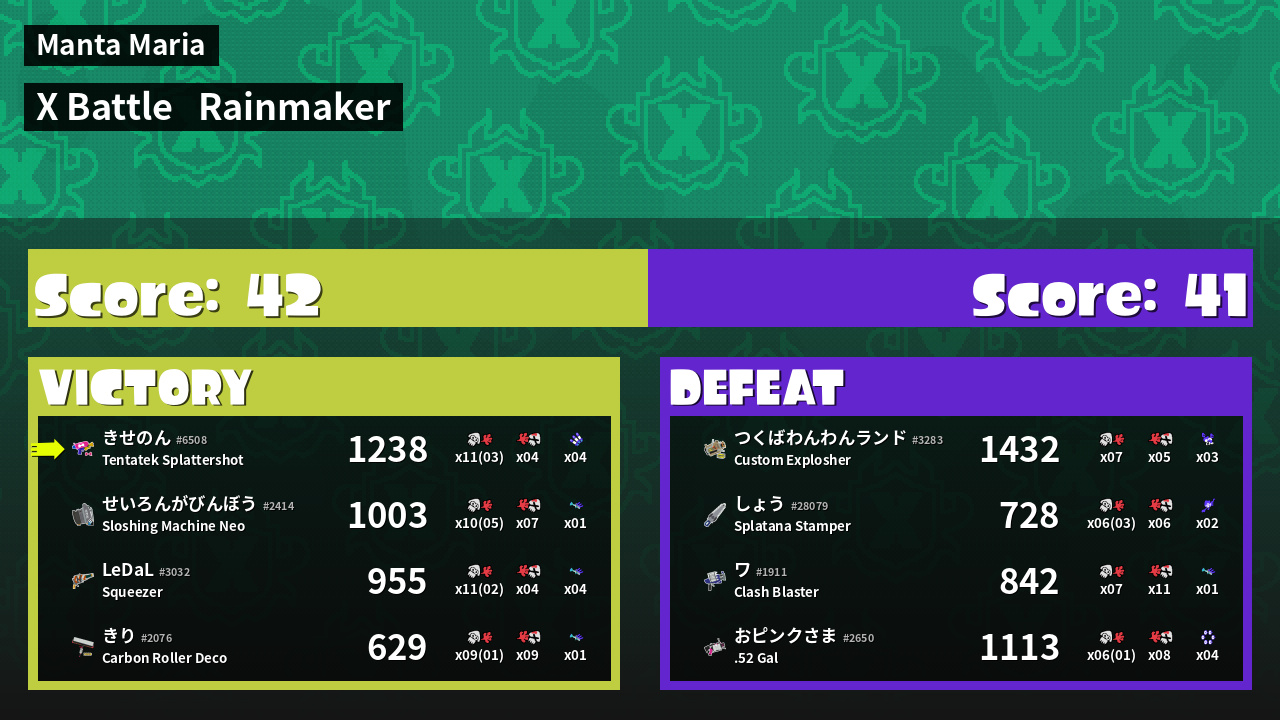 | Weapon | Tentatek Splattershot ( Splat Bomb / Triple Inkstrike) | ||