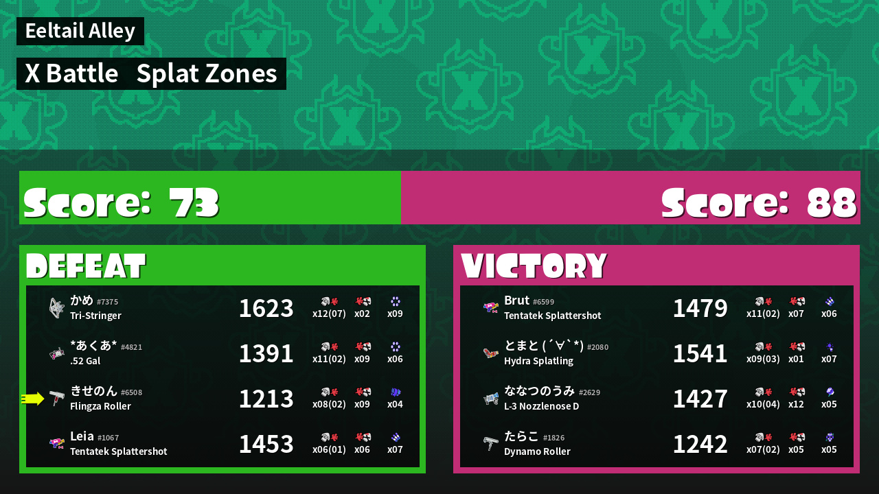 | Medals | #1 Splat Zone Guard #1 Tenta Missiles User #2 Super Jump Spot | ||