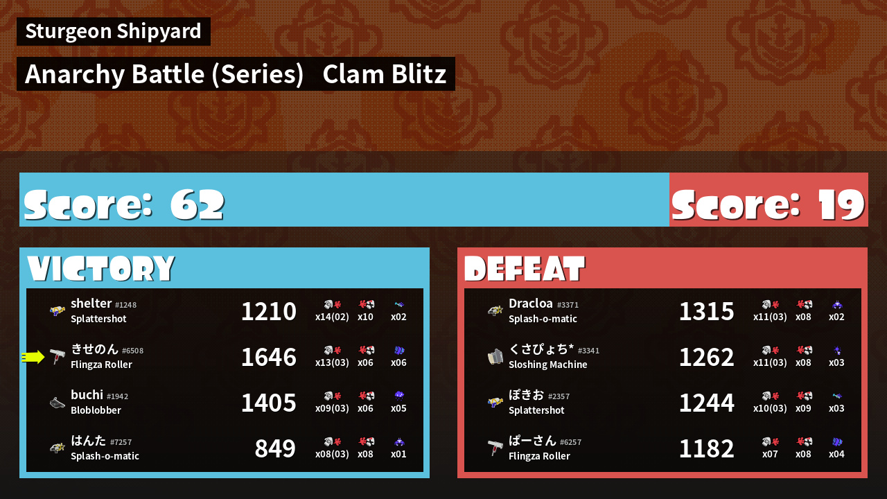 | Mode | Clam Blitz - Anarchy Battle (Series) | ||