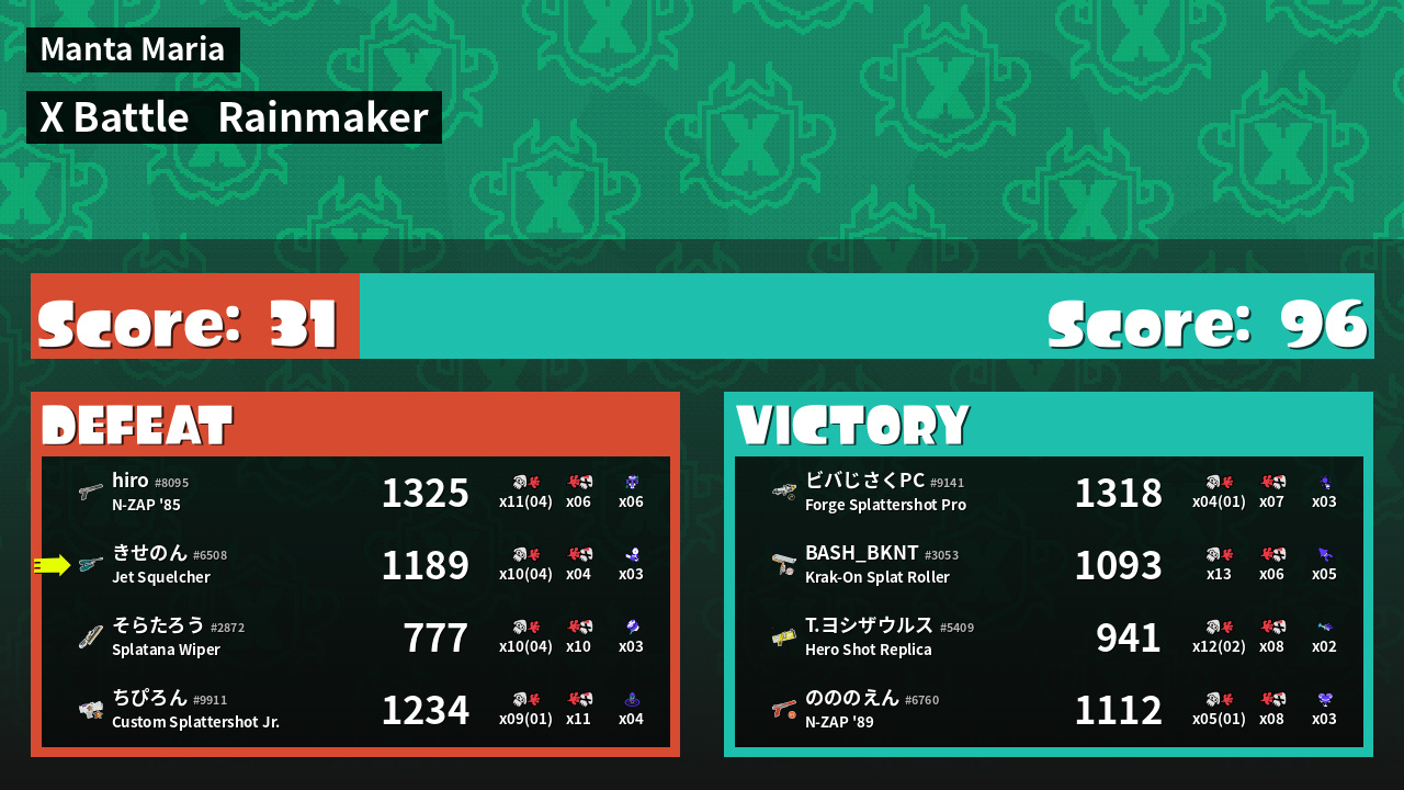 | Mode | Rainmaker - X Battle | ||