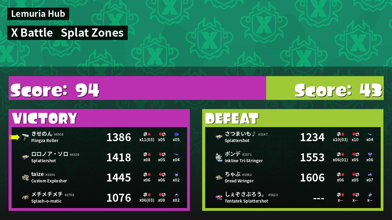 | Mode | Splat Zones - X Battle | ||