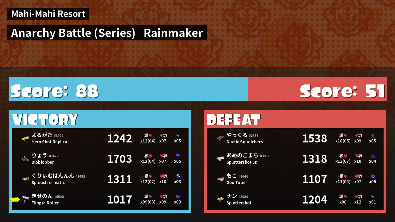| Mode | Rainmaker - Anarchy Battle (Series) | ||