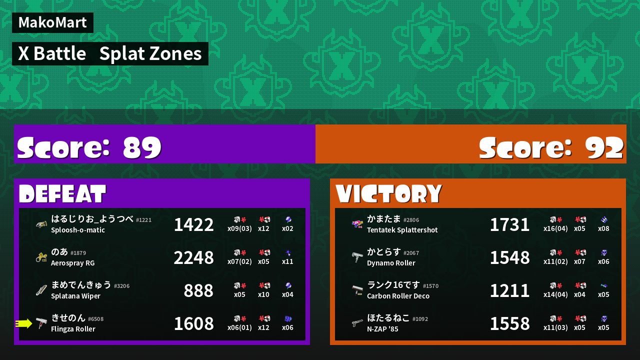 | Medals | #1 Tenta Missiles User #2 Splat Zone Guard #2 Turf Inker | ||