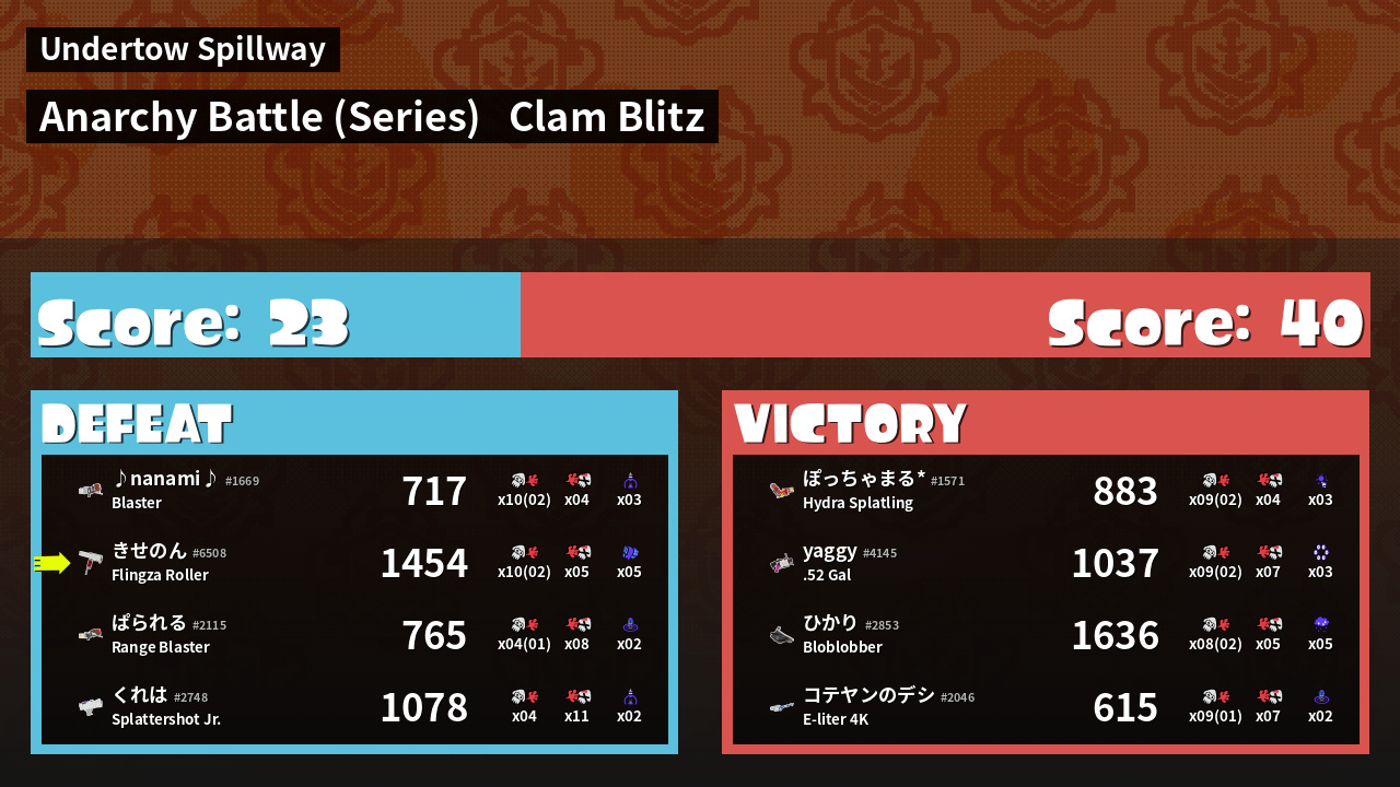 | Mode | Clam Blitz - Anarchy Battle (Series) | ||