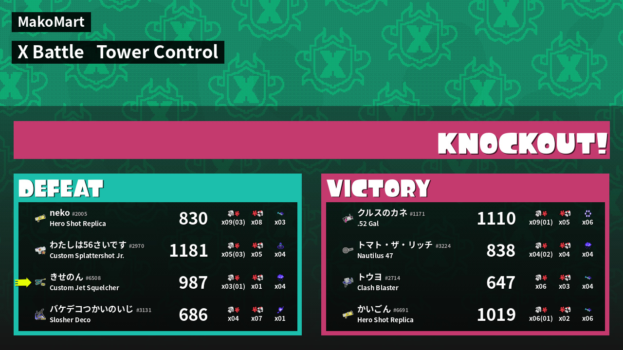 | Mode | Tower Control - X Battle | ||