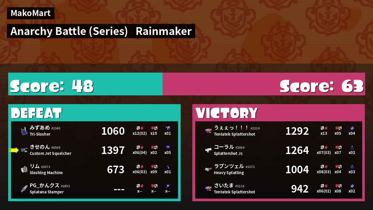 | Mode | Rainmaker - Anarchy Battle (Series) | ||