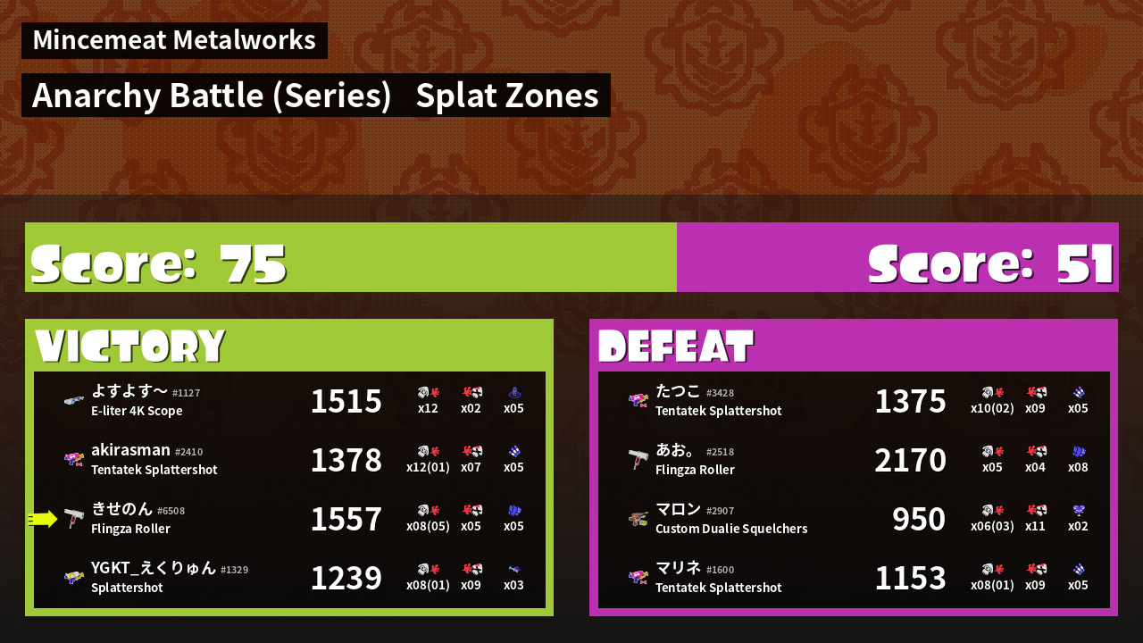 | Mode | Splat Zones - Anarchy Battle (Series) | ||