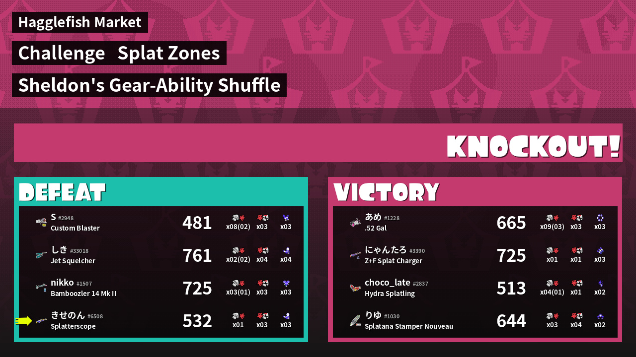 | Weapon | Splatterscope ( Splat Bomb / Ink Vac) | ||