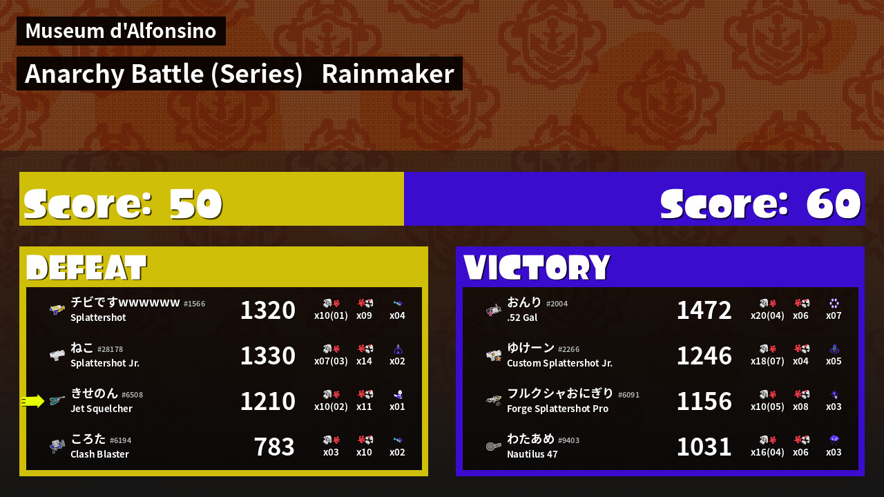 | Mode | Rainmaker - Anarchy Battle (Series) | ||